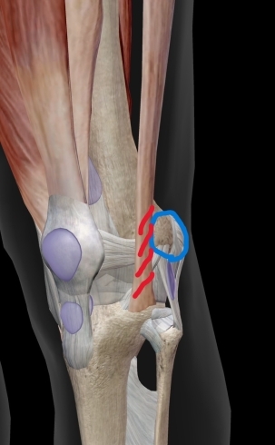 膝の外側の骨と繰り返し擦れ合うことで痛みが発生します。