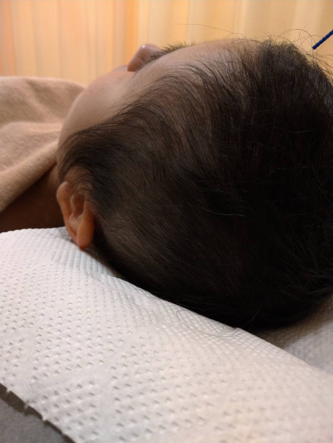 10年程前から脱毛が気になり始め、医師が監修したサプリメントや育毛剤を使用されていました。 使い始めてから長い間効果を感じていましたが、近年効果が無くなり、脱毛が増加してしまいました。 色々と調べた結果、鍼灸に辿り着き、当院に来院されました。